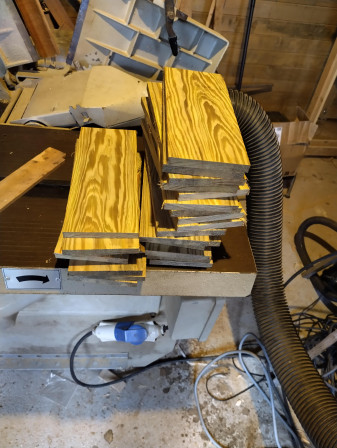 Pour le côté « récupération », je débite des planches de coffrage qui ont déjà bien vécu, puis je dégauchis et rabote les petits morceaux obtenus :